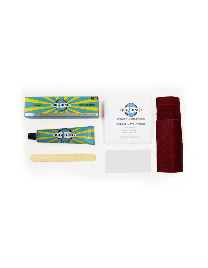 The BIG DING Epoxy Fiberstrong UV Cure Tube is a mixture of bubble free and super strong fiberglass supported epoxy resin that cures within few minutes by the power of the sun. Use it to repair a ding, if you have a epoxy based board.