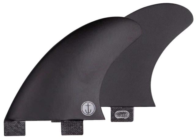 The Side Biters Twin Tab Twin Fin set from Captain Fin features a 3.75" height, stiff flex, and fiberglass construction. Perfect for a Mid Length or Longboard with a 2+1 setup. Compatible with the FCS, FCS II.