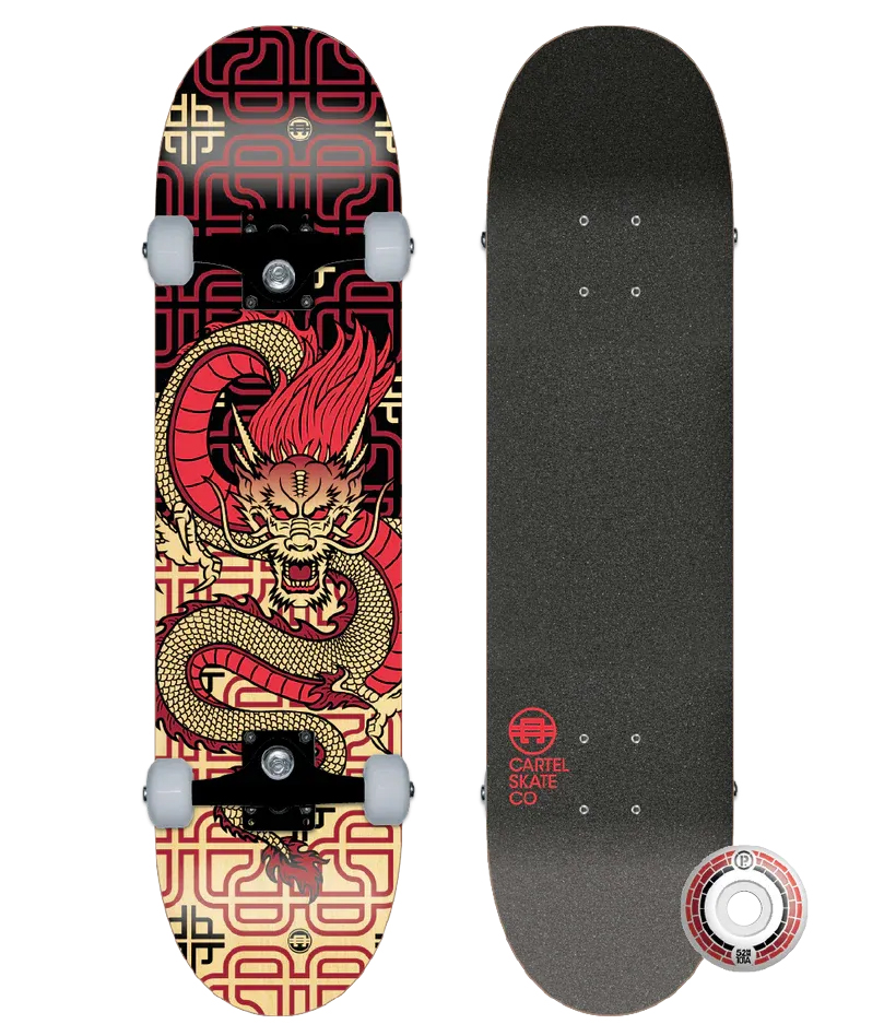 Complete skateboard with a bold, pop-inspired design, perfect for street, skatepark, and basic tricks. The Cartel is a ready-to-ride setup combining durable components and classic materials to deliver fun, easy-to-control performance—ideal for beginners or anyone looking for a complete board.