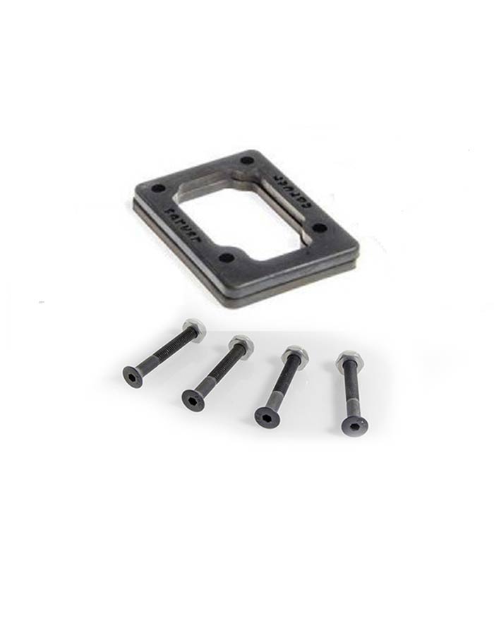 Soft, lightweight hollow risers help dampen your ride and lift the truck to prevent wheelbite with larger wheels. Standard baseplate mounting hole configuration universal to all new-school skateboard trucks.