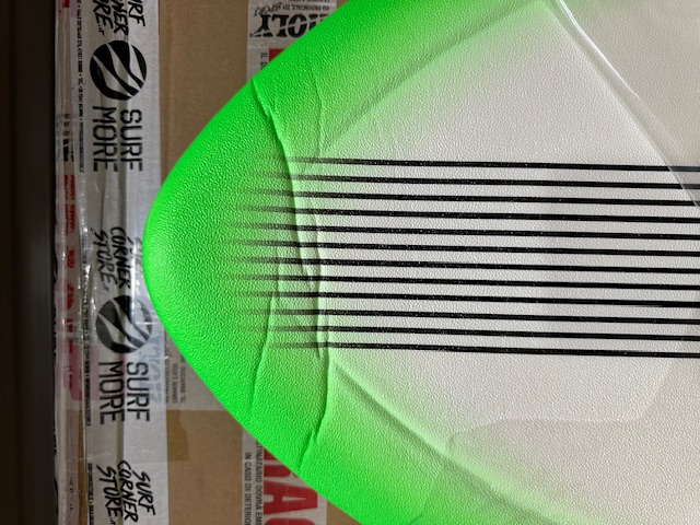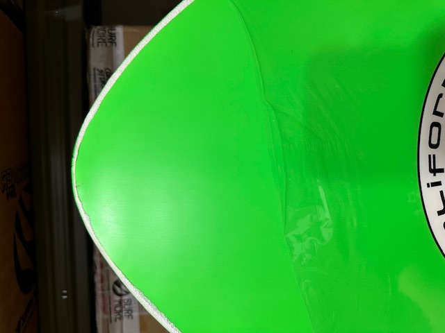 Slight damage during transport with crushing on the nose and very small crushing on the tail, completely irrelevant for the intended use. The bottom remained intact while the crushing left a visible crease on the deck. Purely aesthetic damage.