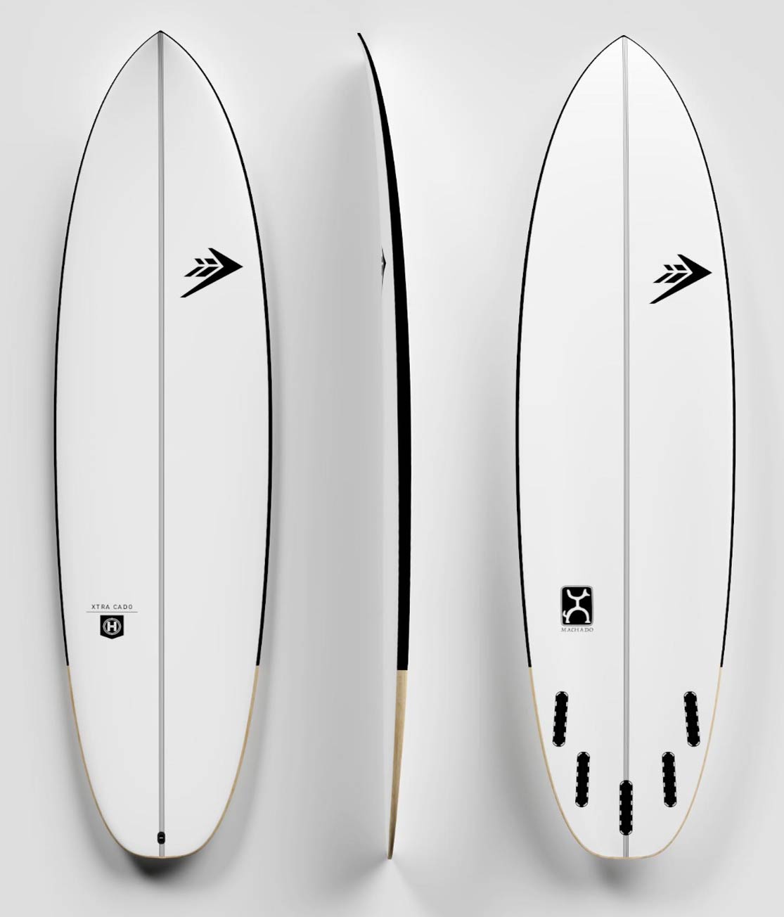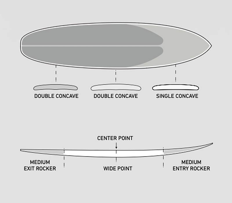 Rob Machado on the Xtra Cado, “I have this real attraction to boards in this midlength realm. It’s not a longboard and it’s not a shortboard. It’s somewhere in between. It’s for the days when you don’t feel like trying as hard as other days, or when the waves just don’t give you the green light to try and rip. Maybe you just want to glide into a few waves draw out a couple longer turns, and maybe that’s all it is, for simplifying the day. The Xtra Cado is the board with plenty of foam to get up and gliding with a deep single concave that quickly turns into a double concave with some board eat board panels down the rails to make the transitions easier. The shape’s outline is pleasing to the eye, with a semi-rounded