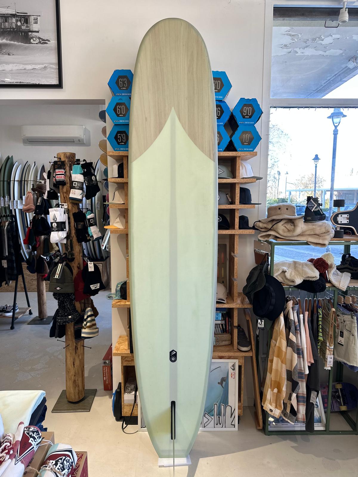 A modern nose rider outline, designed by Taylor Jensen and Stu Kenson. The bottom contours flow gently from a single concave in the nose to a slightly rolled bottom thru the the middle and flat out the tail, making this board very user-friendly.