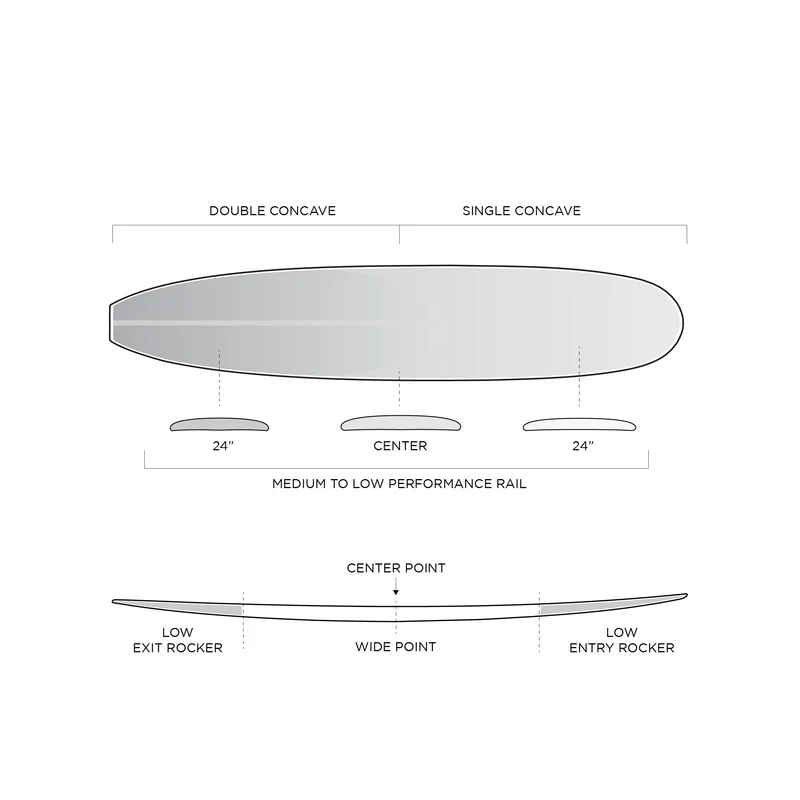 Featuring a wide single concave nose and a tucked hard edge square tail, this board allows long boarders of all levels to Hang 10 and turn like a pro without compromising on the agility and ease of owning a lighter longboard. The wide point adds stability on the tip while that tucked hard edge in the tail makes accelerating off the bottom and cutting back a sinch.