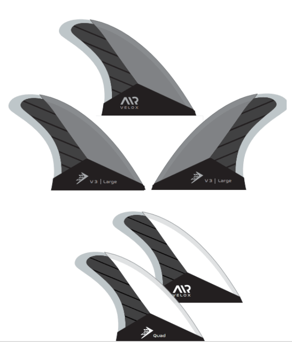 A better build – a core engineered from high density polymer overlayed with carbon veils, the Velox Fin Set has an unmatched mix of flex and strength enabling controlled spring and rebound in turns, and additional control above other fin building methods.