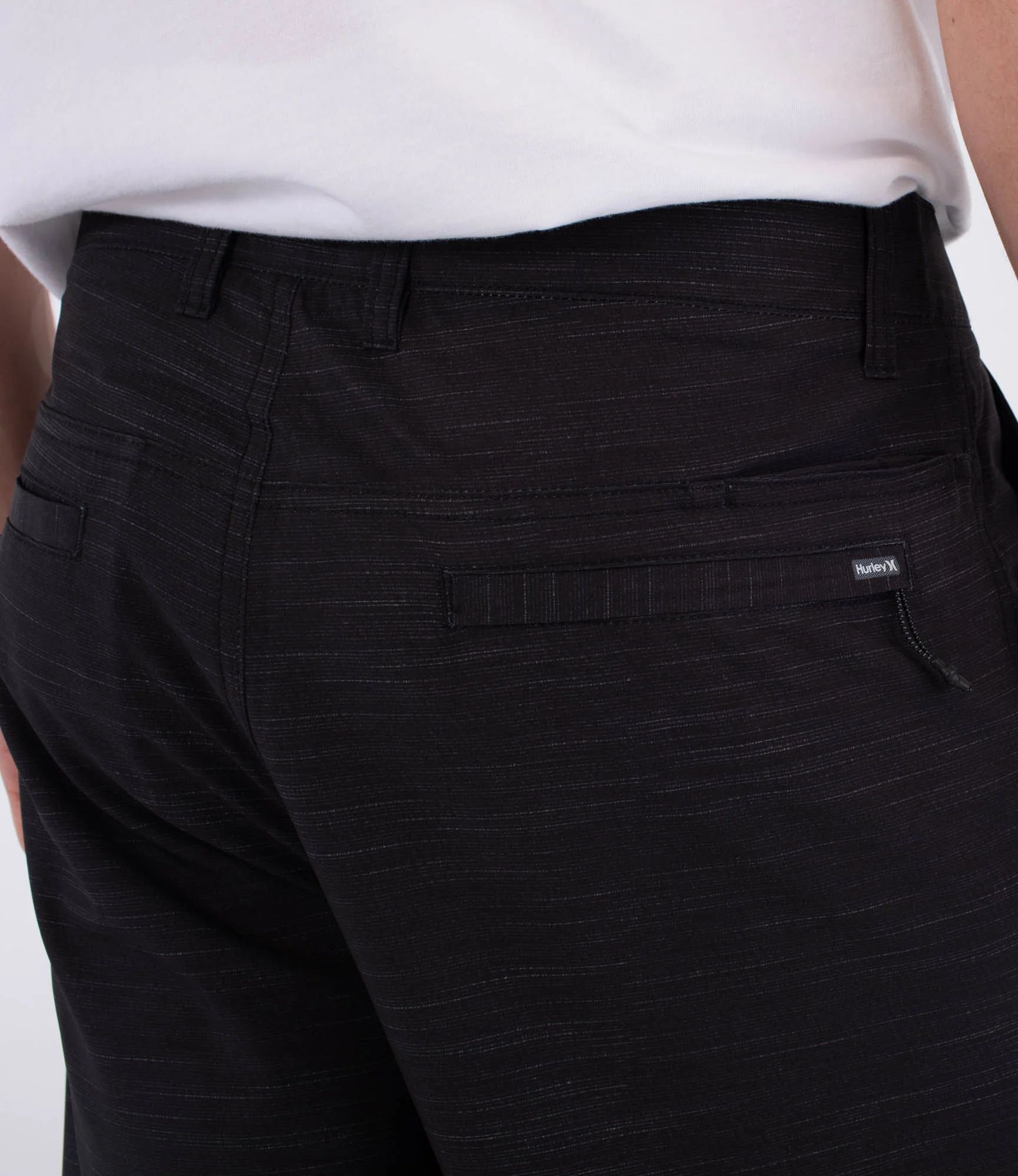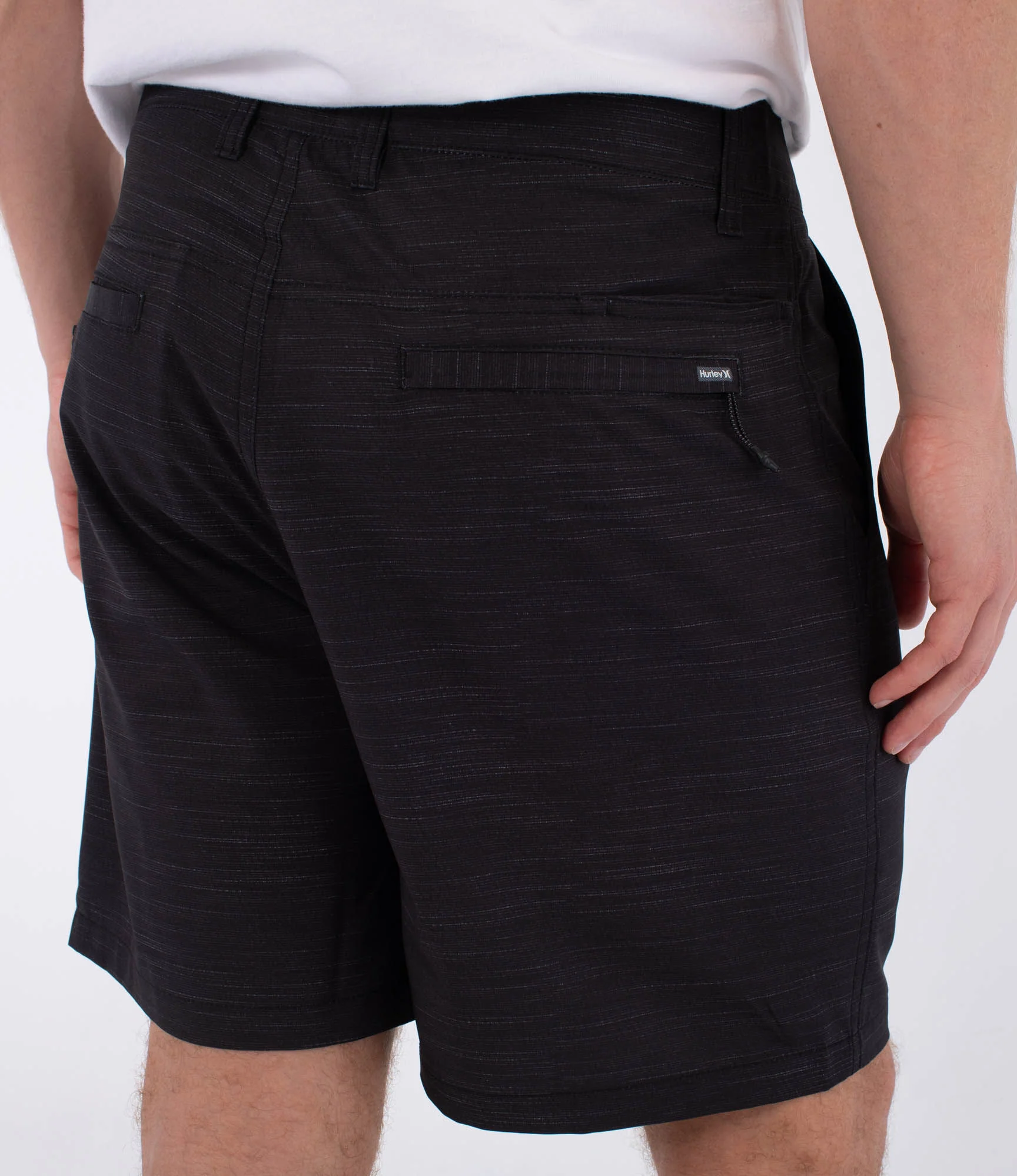 - Hurley label above one back pocket for subtle branding.