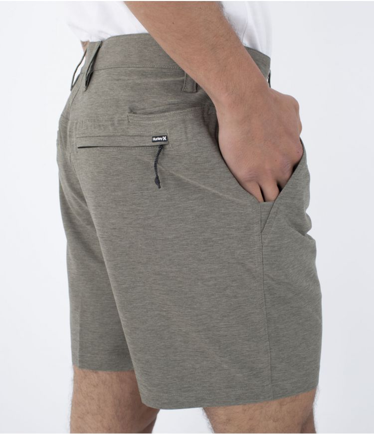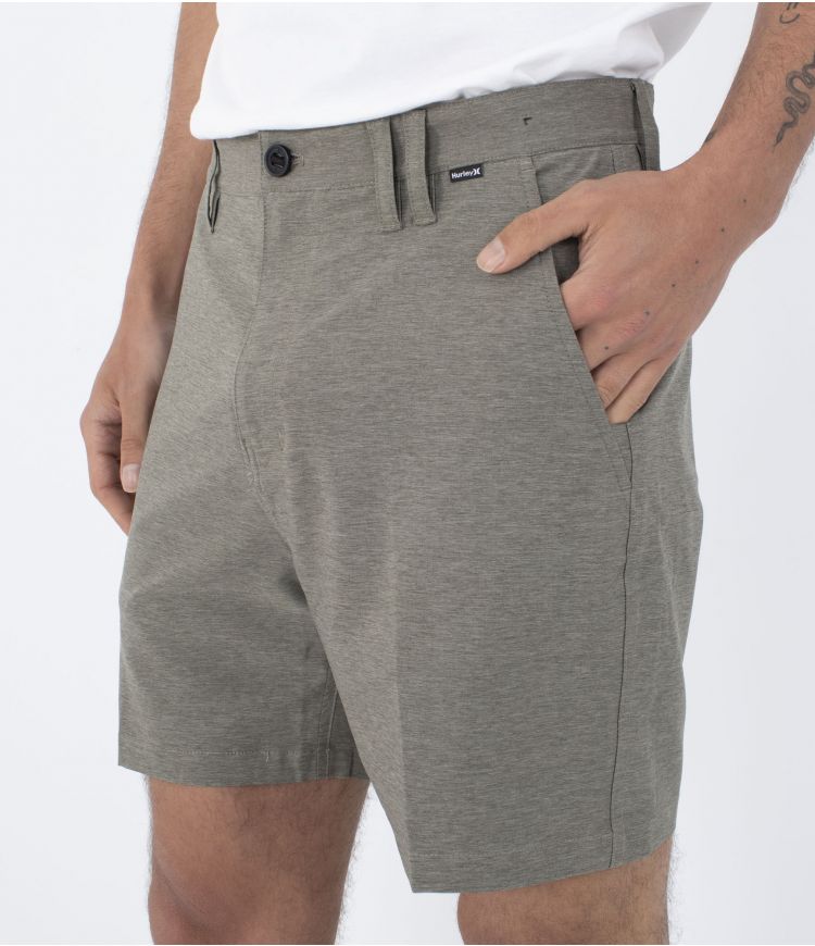 The Hurley Phantom Heather Walkshort 18" has easy moving 4-way stretch fabric with DWR coating to help repel moisture, providing quick dry action.