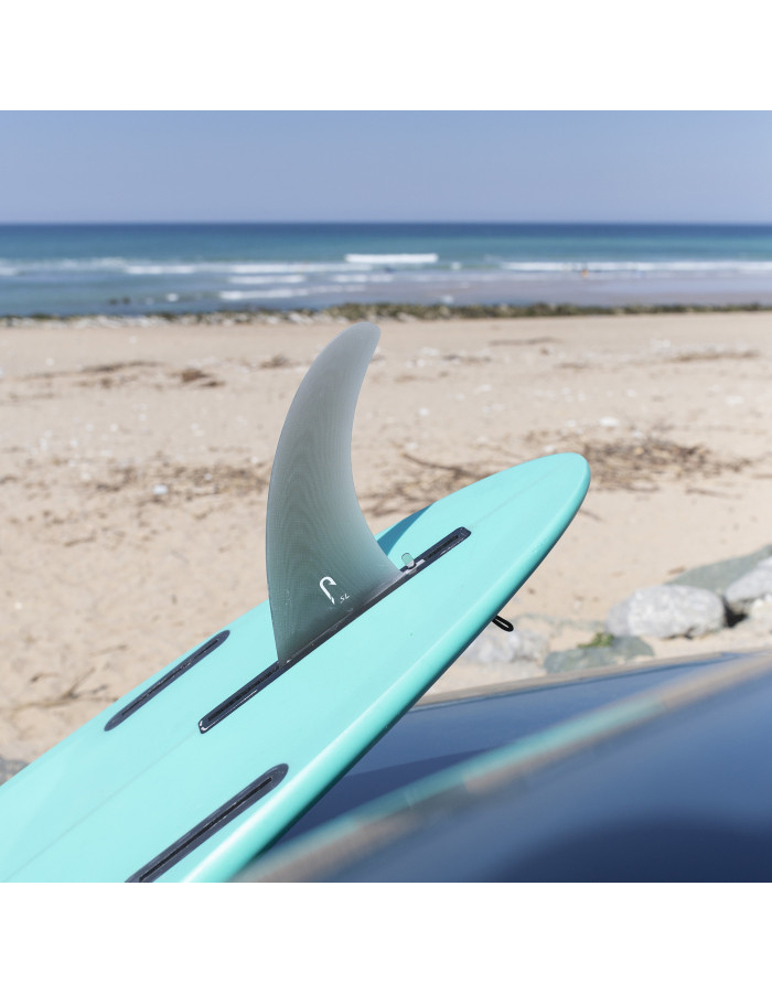 The JUST 7.5” longboard fin - Fiber Smoke is an "all-around" fin that works perfectly as a single on small boards or as a 2+1 on longer boards.