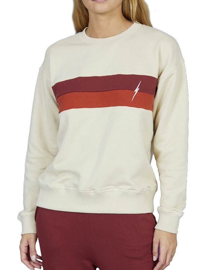 LIGHTNING BOLT BLOCK CREW FLEECE WOMAN Beige sweatshirt in light brushed fleece with contrast-panelled insets and logo embroidered on the chest. Ribbed collar, cuffs and hem. Designed for a slightly cropped fit. Composition 100% CO