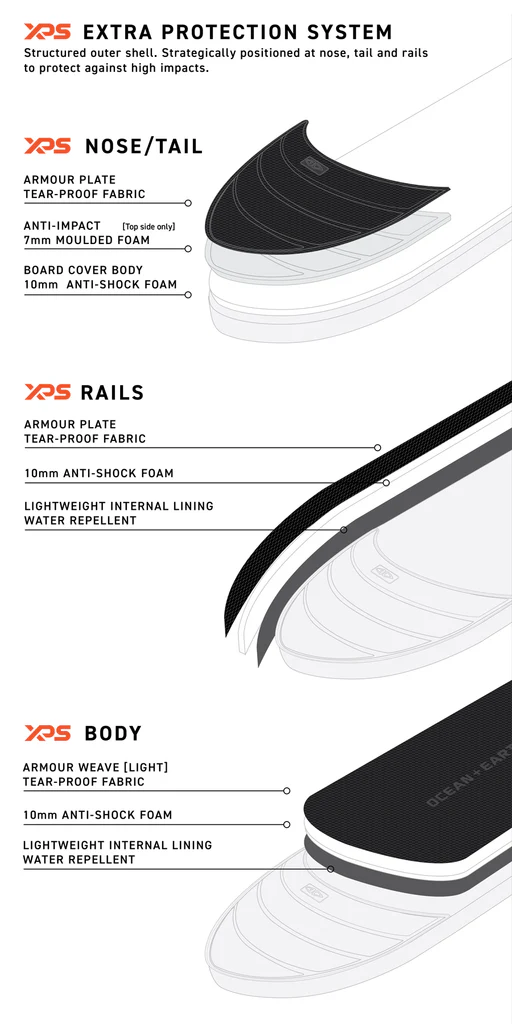 Embrace the future of surfboard protection with our innovative APEX, 'XPS' protection system, incorporating a structured external shell (XPS) for high- impact defence instilling a lifetime of trust.