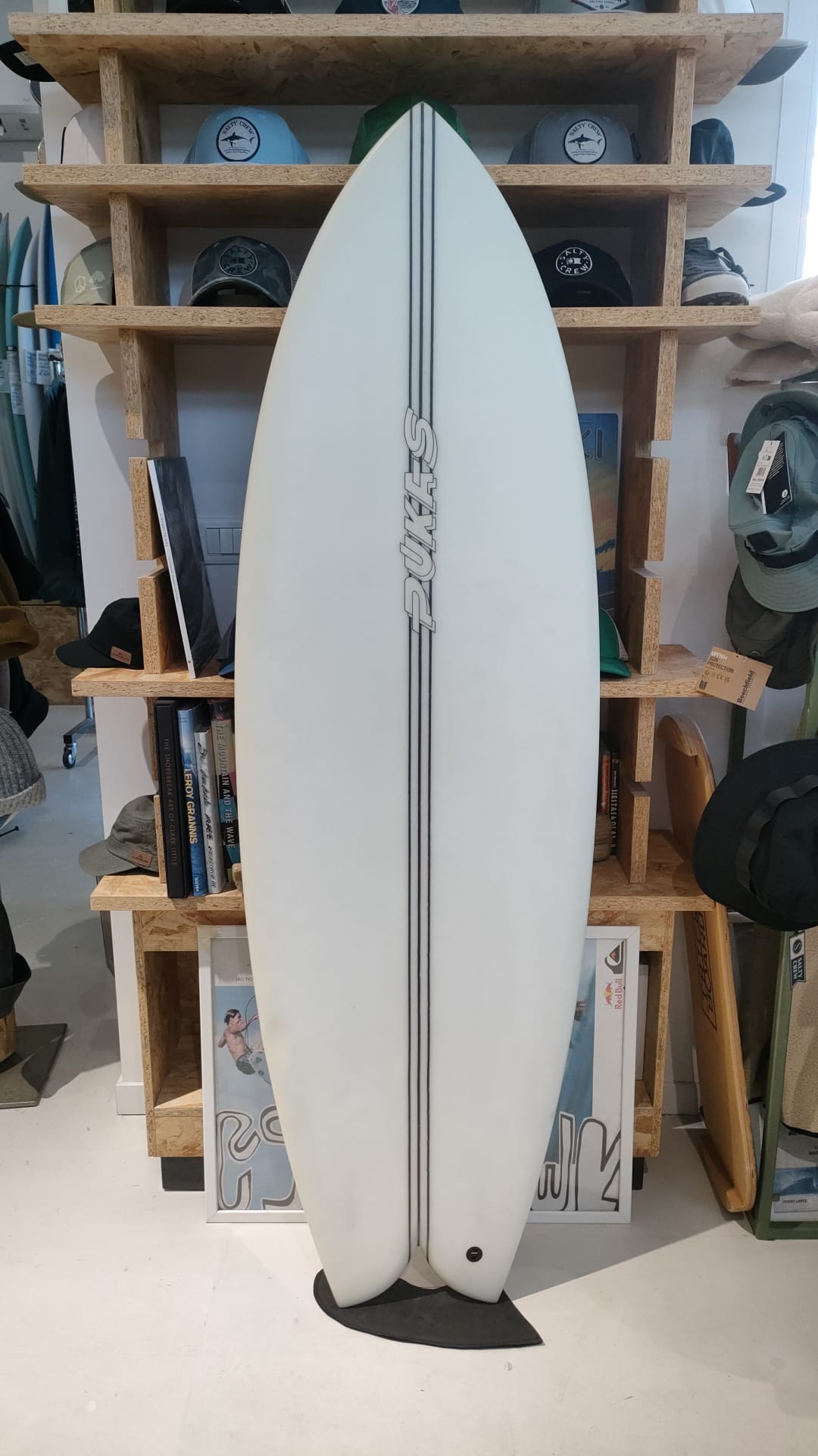 The design of the Wombi fish looks relatively simple at first look but has some small, important details that give the board extra edge and performance. It features a wide, clean outline with a full nose and medium swallow tail with a slight direction change or ‘hip’ that extends from the leading fins off the tail. A subtle attribute inspired from a Skip Frye quad shaped for Tom Carroll that he proudly came and showed me back home in Sydney. The bottom contours of the Wombi Fish begins with a simple rolled entry at the tip of the nose which then blends into our signature subtle quad concave just forward from the chest. From there, a double within a single concave takes effect and strengthens through the mid-section of the board (between the feet) finally finishing with spiral vee through the fins and off the tail.