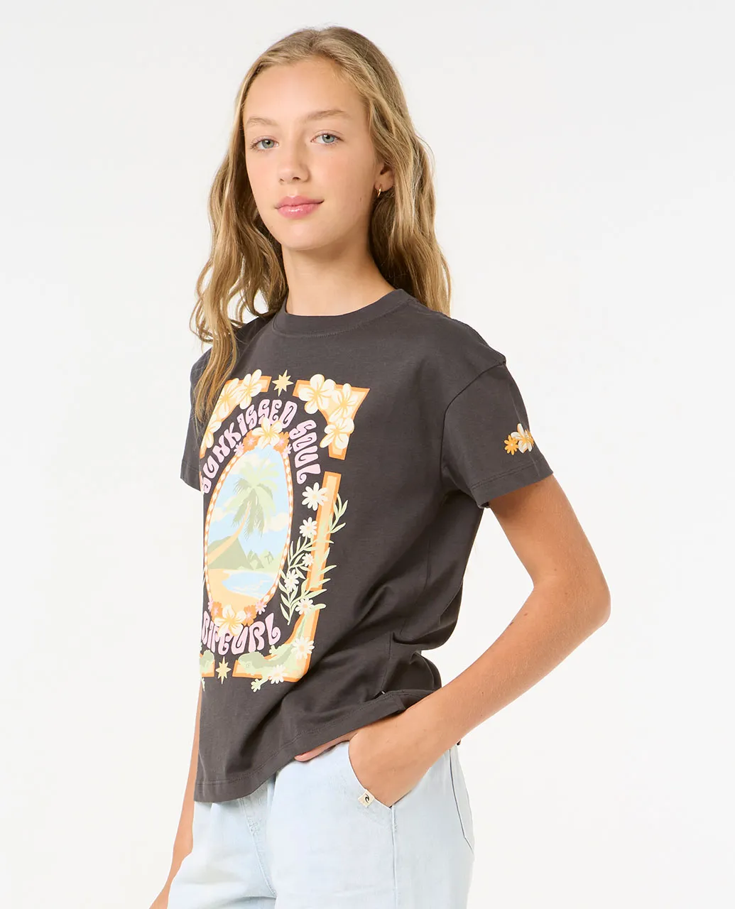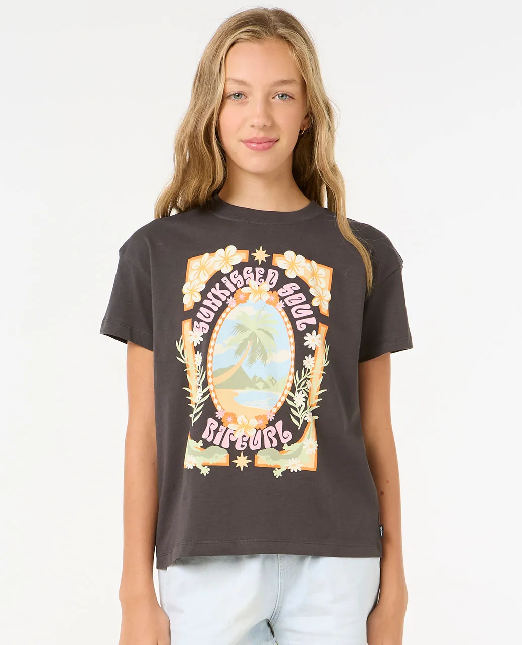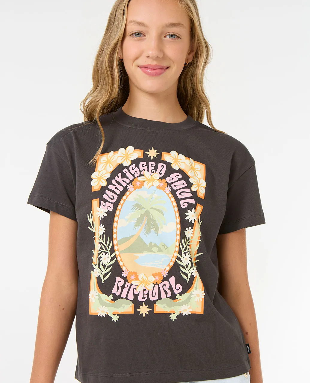 RIP CURL ISLAND BLISS ART TEE GIRL WASHED BLACK