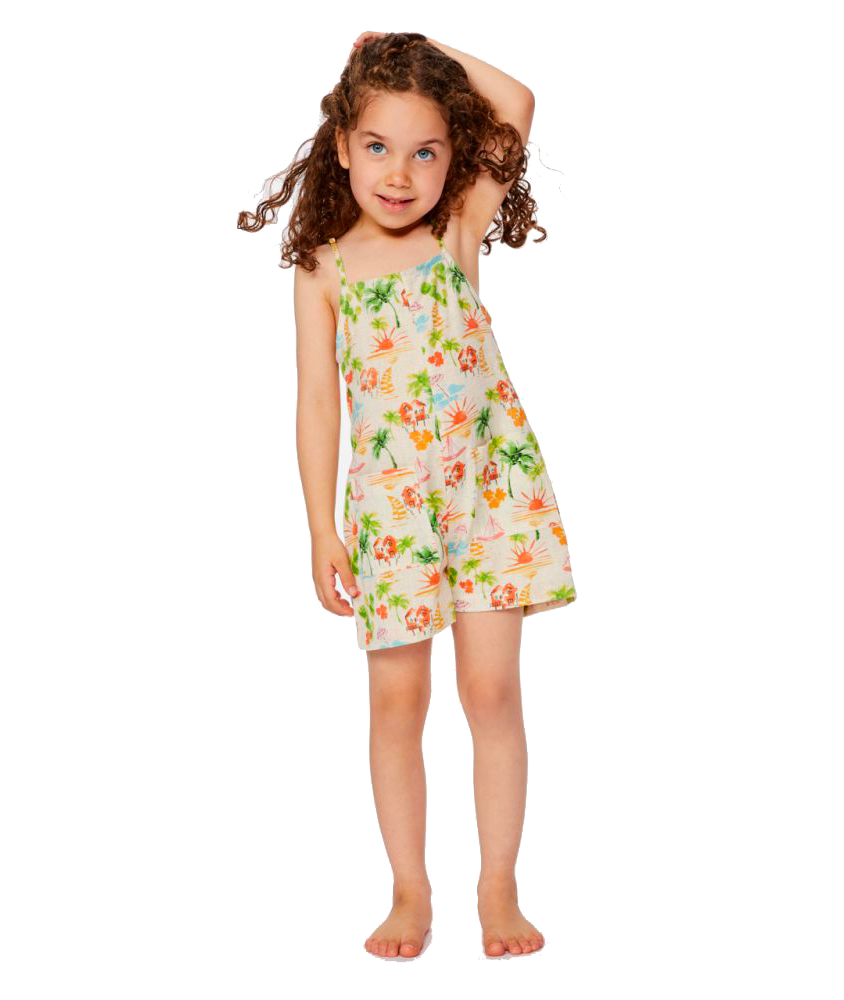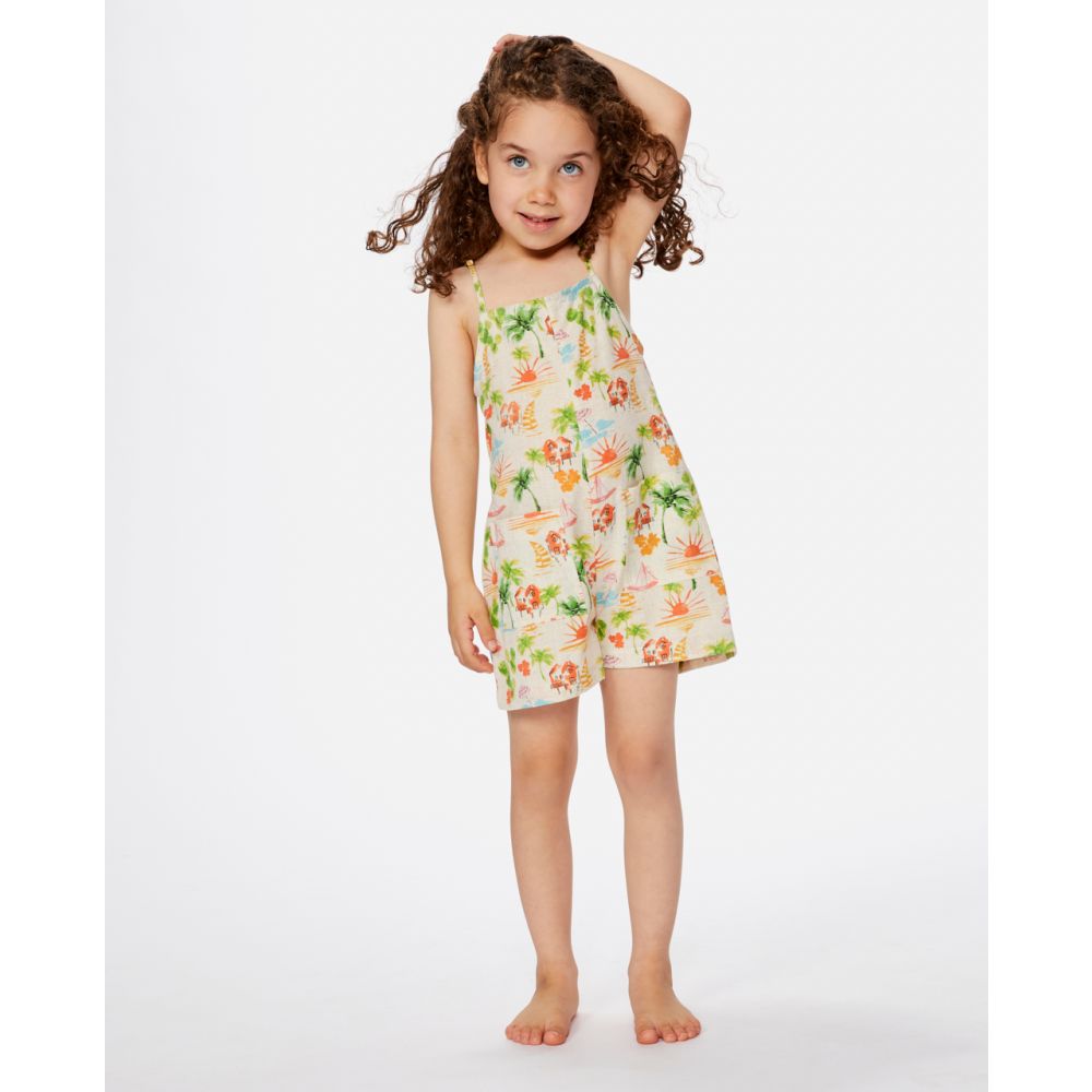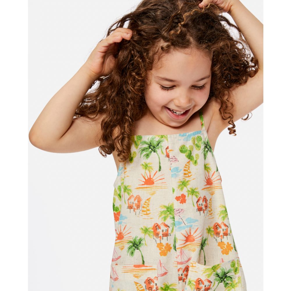 The Vacation Club is gorgeous girls romper is designed in a standard fit with adjustable straps, featuring blossoming tropical prints, complimented by timeless tones and textures in a classic linen blend.