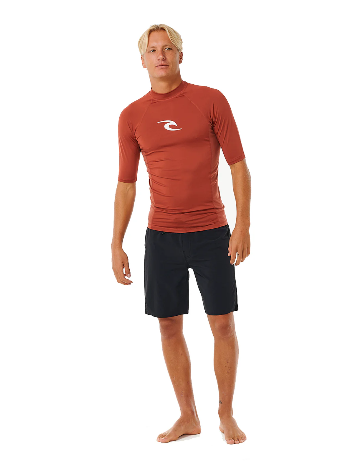 Catch the waves with the Waves UPF50+ Performance short Sleeve Rash Vest, featuring heat transfer, front and back print, flatlock stitch detail, and UPF50+ sun protection rash vest.