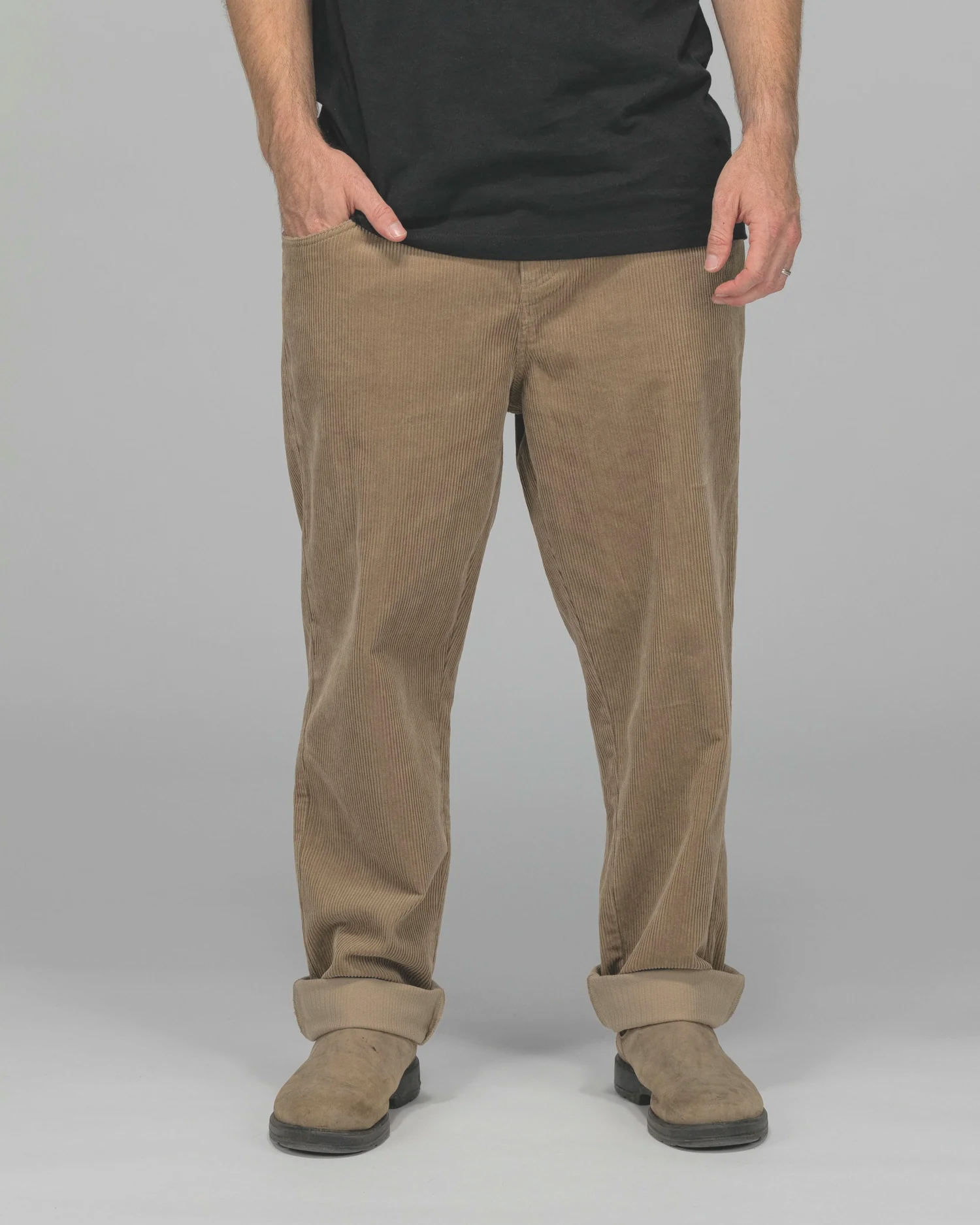 100% COTTON Corduroy with elastic waist Relax Fit Branded button with zip fly Back pocket bags