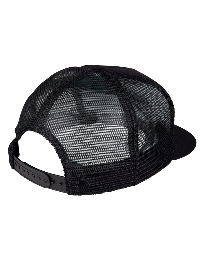 Trucker style, foam front mesh back cap with snap fastening and front print