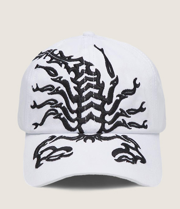 Iconic green baseball cap with embroidered scorpion. Velcro closure. Curved visor. Made from cotton twill.