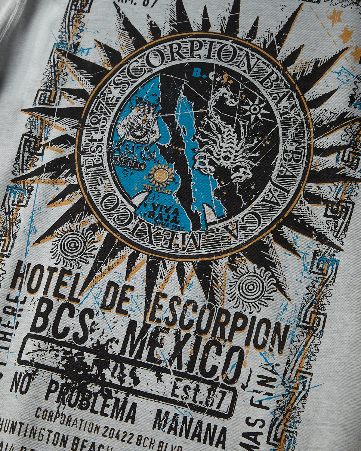 SCORPION BAY HOTEL MAP T-SHIRT GUNMETAL