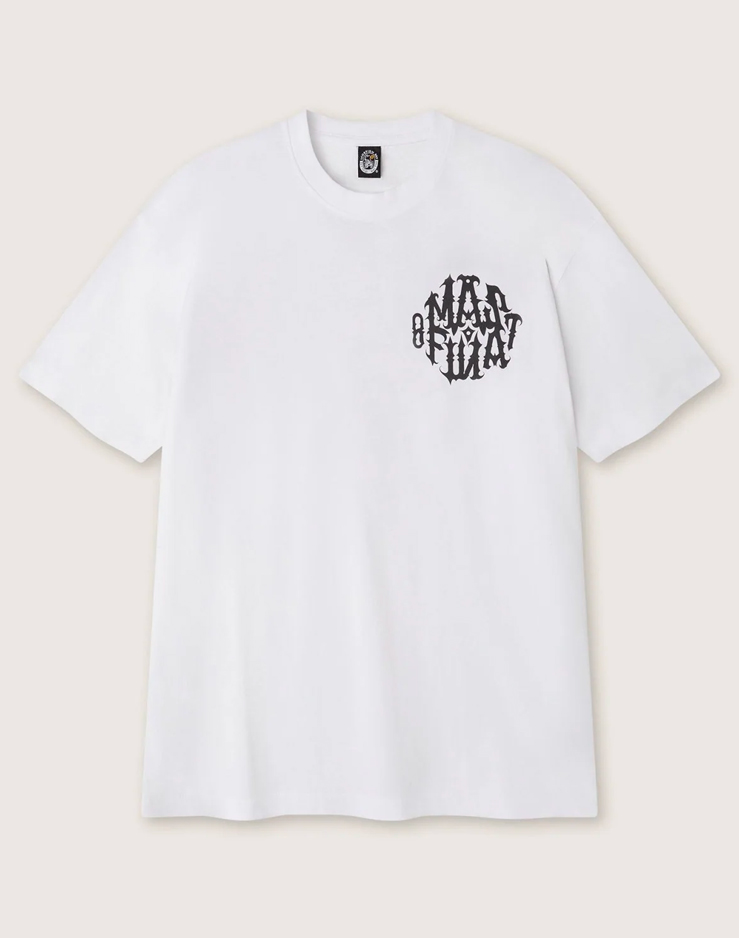 Men’s printed T-shirt in white. Graphic lettering print on the back and chest.