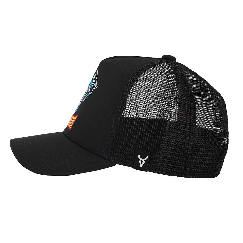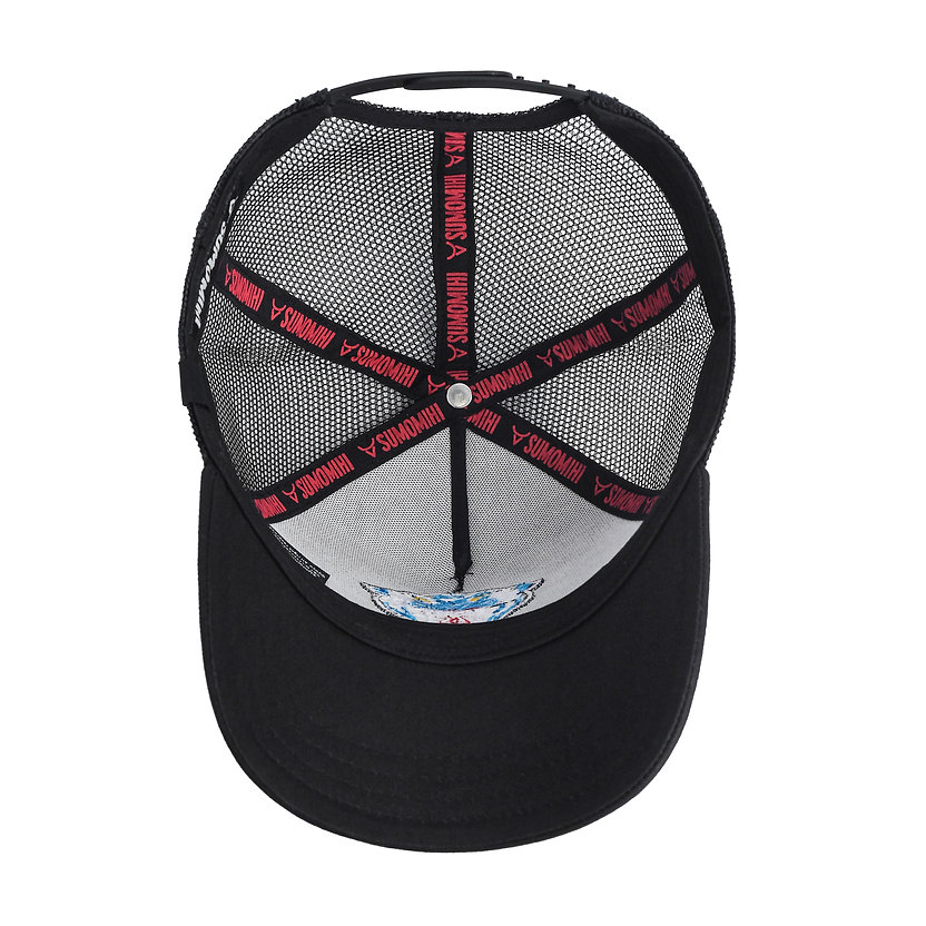 5-panel trucker cap with cotton front panel and visor, and high-quality mesh side and back panels.