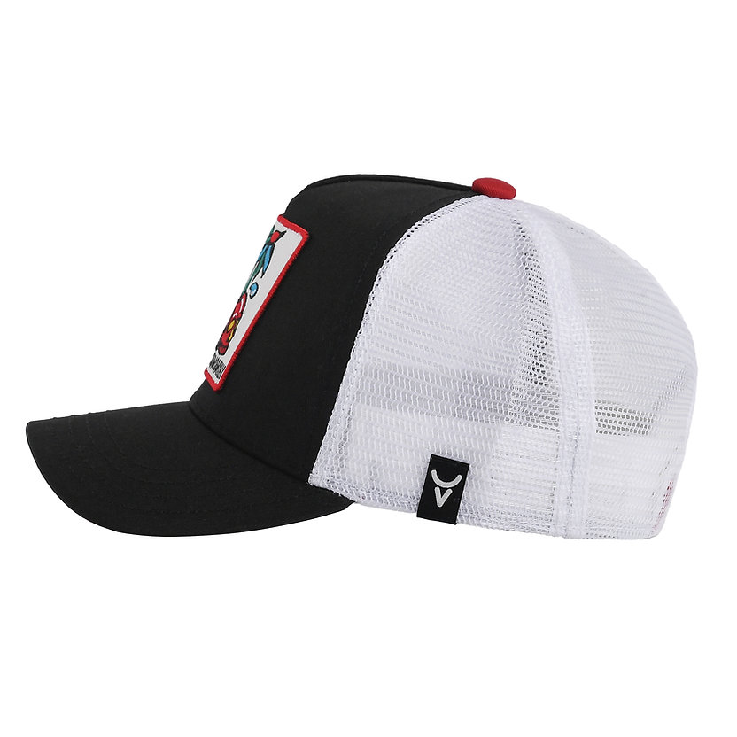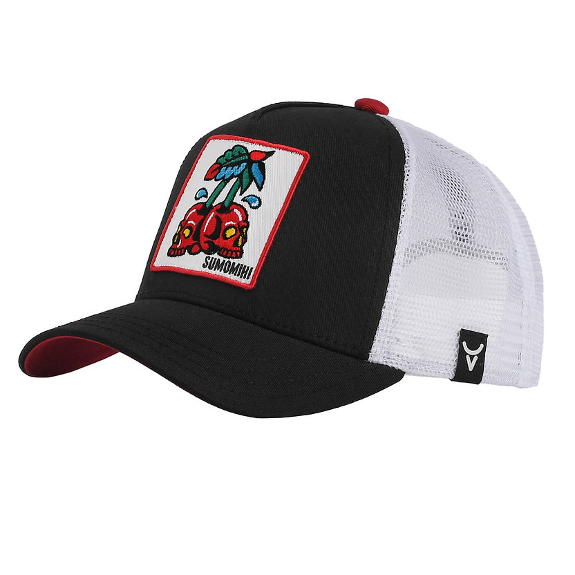 5-panel trucker cap with cotton front panel and visor, and high-quality mesh side and back panels.