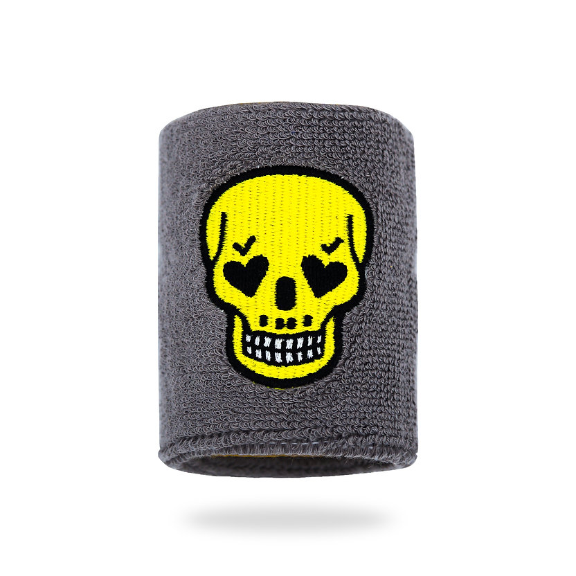 SUMOMIHI terry wristband. White color, front skull design, “SUMOMIHI” lettering on the back.