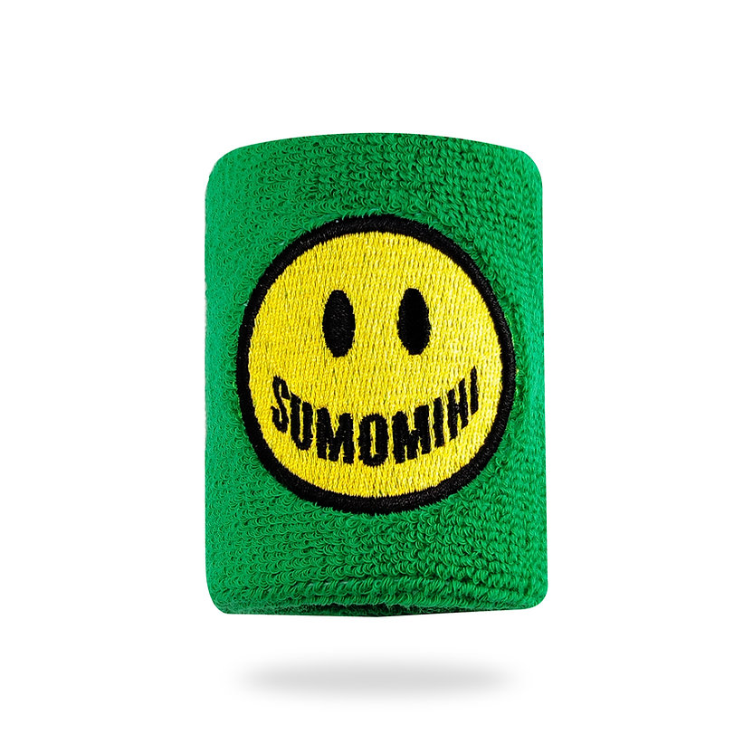 SUMOMIHI terry wristband. Smile Green, “SUMOMIHI” lettering on the back.