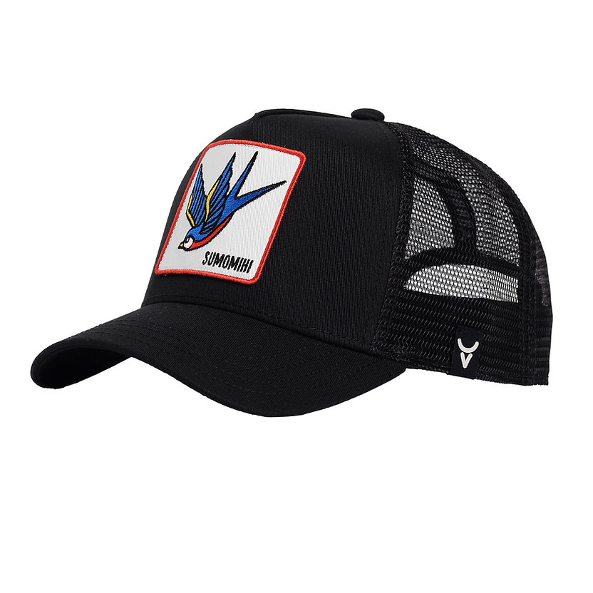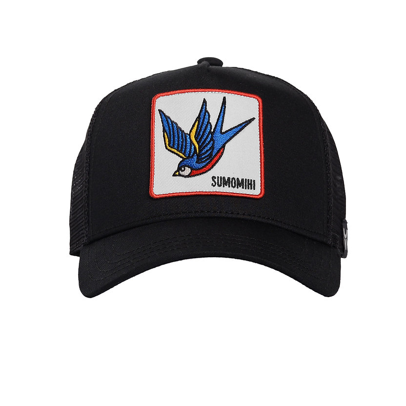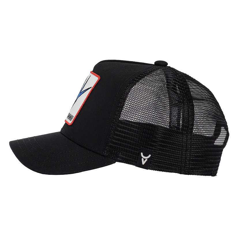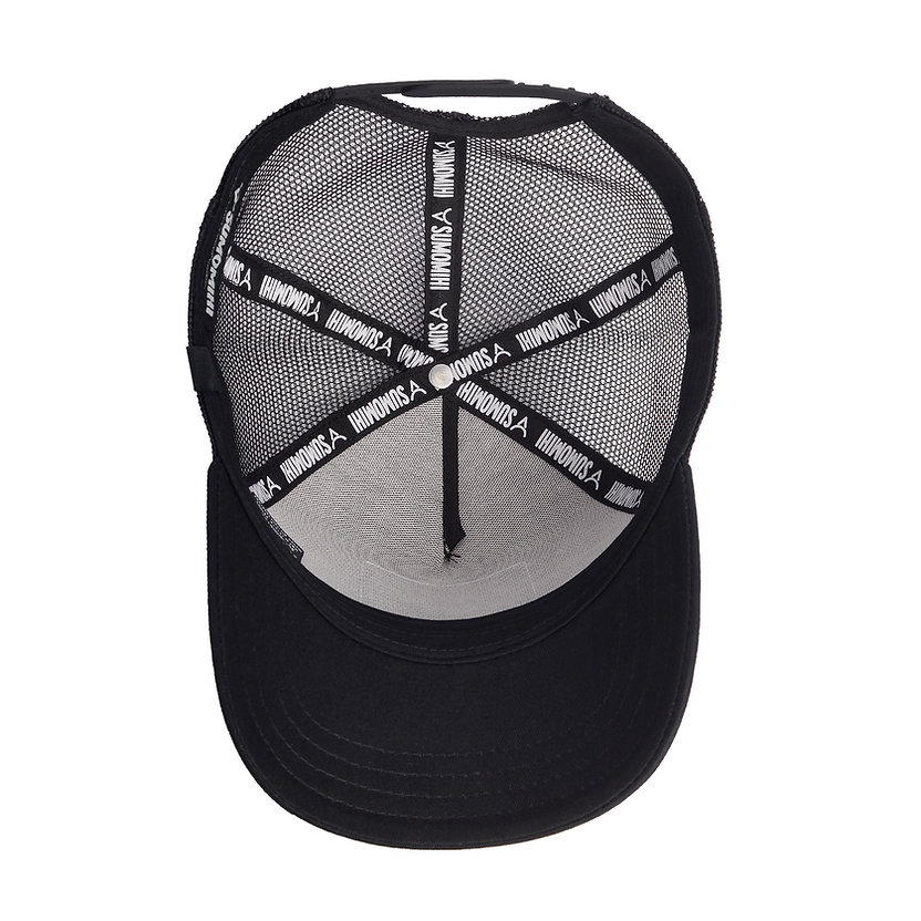 5-panel trucker cap with cotton front panel and visor, and high-quality mesh side and back panels.