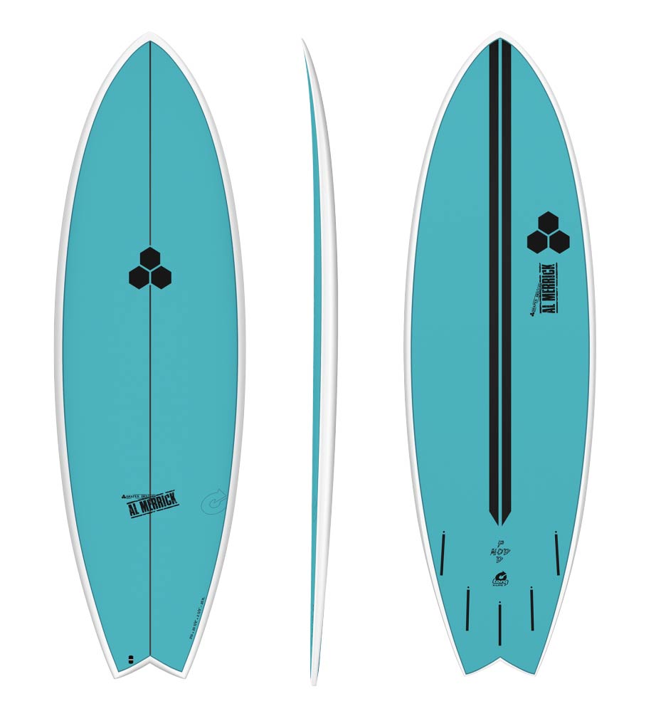 The Pod Mod design is a heavily modified Pod, designed to be ridden even shorter and wider than the original, catering to the surfer that wants a little more volume forward to catch waves but doesn’t want to sacrifice performance. The tail has been widened for small wave glide, and the original single to double concave has been replaced with a flat entry to concave vee for quick rail to rail transitions.